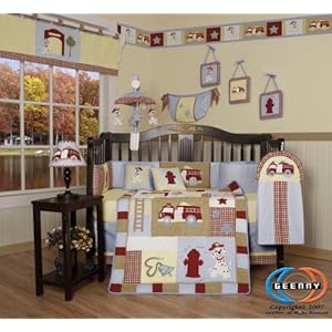Boutique Brand New GEENNY Baby Boy FireTruck 13PCS CRIB BEDDING SET